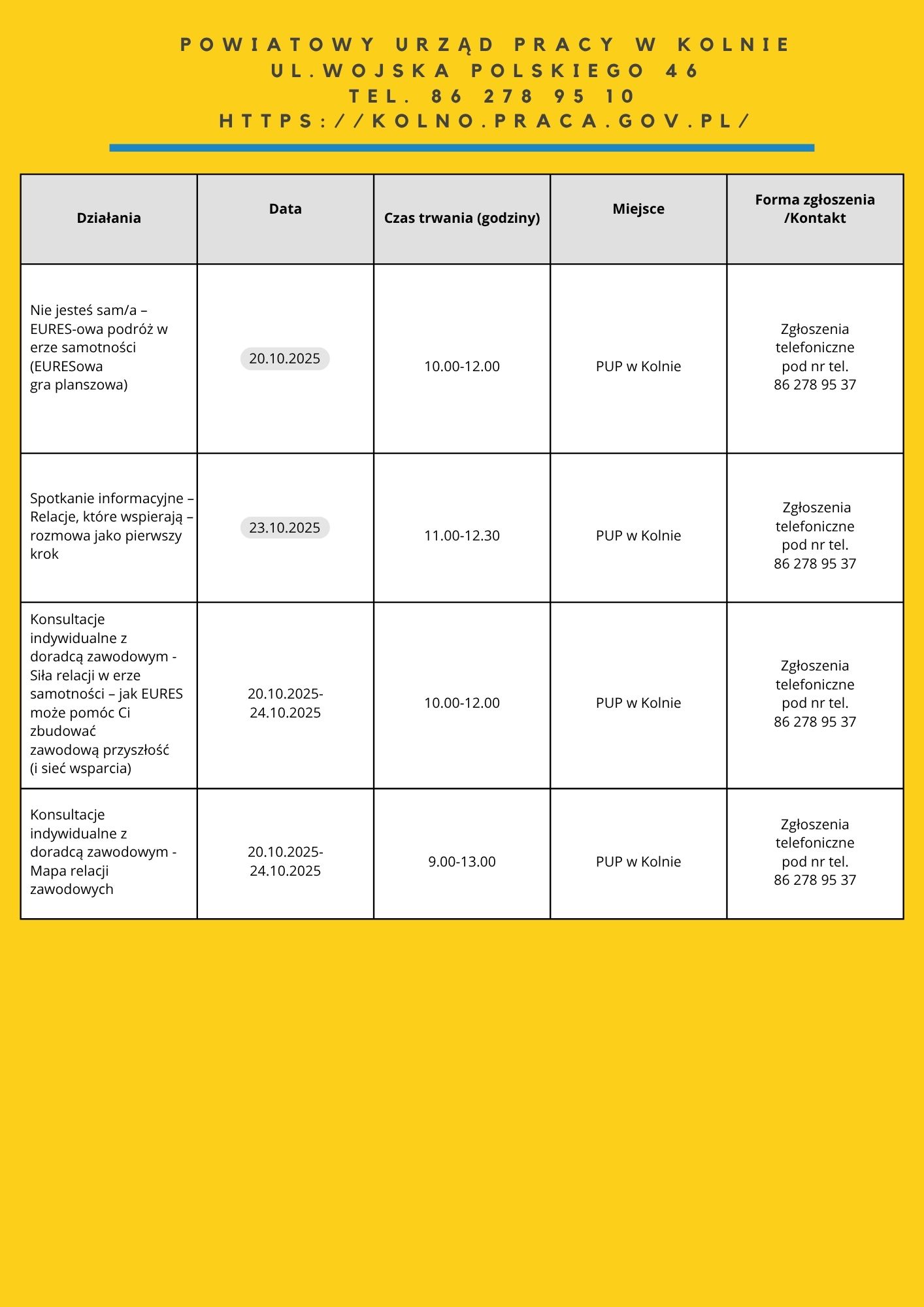 Zapraszamy do zapoznania się z harmonogramem działań OTK 2025. Na niektóre z naszych propozycji obowiązują zapisy. Chętnych do skorzystania zapraszamy do kontaktu: te. 85 74 97 244 lub 241, https://wupbialystok.praca.gov.pl/zapisz-sie-na-spotkanie-warsztaty/
